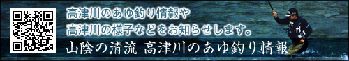 高津川の様子や釣果情報、漁協からのお知らせなどをブログで配信しています。以下の「山陰の清流 高津川のあゆ釣り情報バナー」をクリックすると別画面でブログが表示されます。携帯でアクセスする場合は、バナーにあるQRコード、もしくは左サイドナビのQRコードからアクセスしてください。
